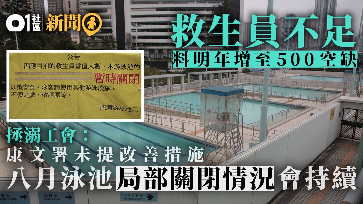 近年多個公眾泳池曾因救生員不足而局部關閉,包括荃灣城門谷游泳池、柴灣游泳池及九龍公園游泳池等。根據港九拯溺員工會及香港政府拯溺員總工會的統計,全港泳池、泳灘及水上活動中心救生員總數欠缺大約414人,接近所需人數2100人的20%。